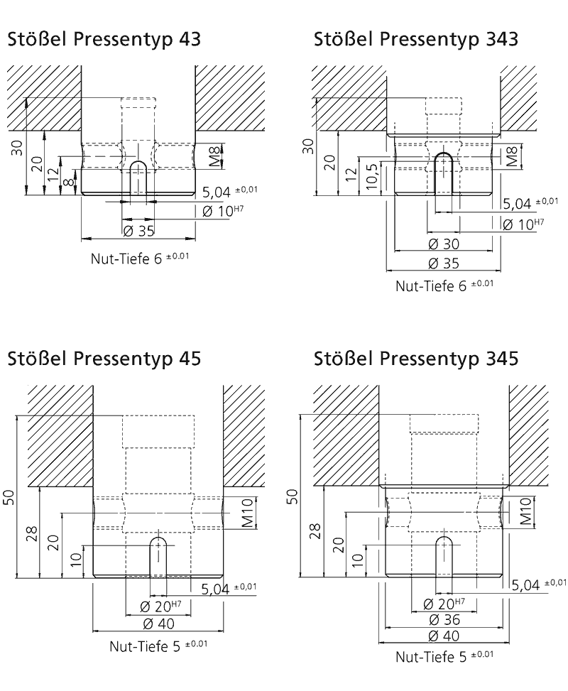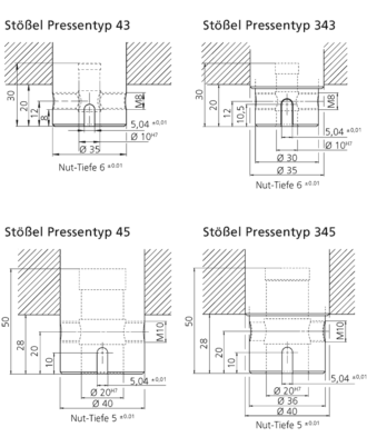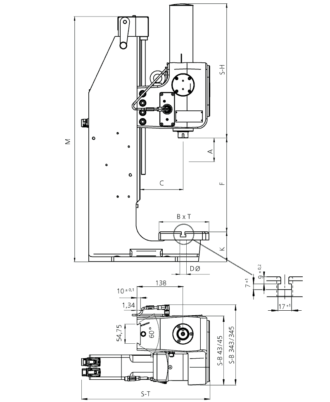 | Frame overview | Press type | Frame height M (mm) | Table size W x D (mm) | Table bore D (Ø mm) | Table height K (mm) | Mounting Surface W x L (mm) | |