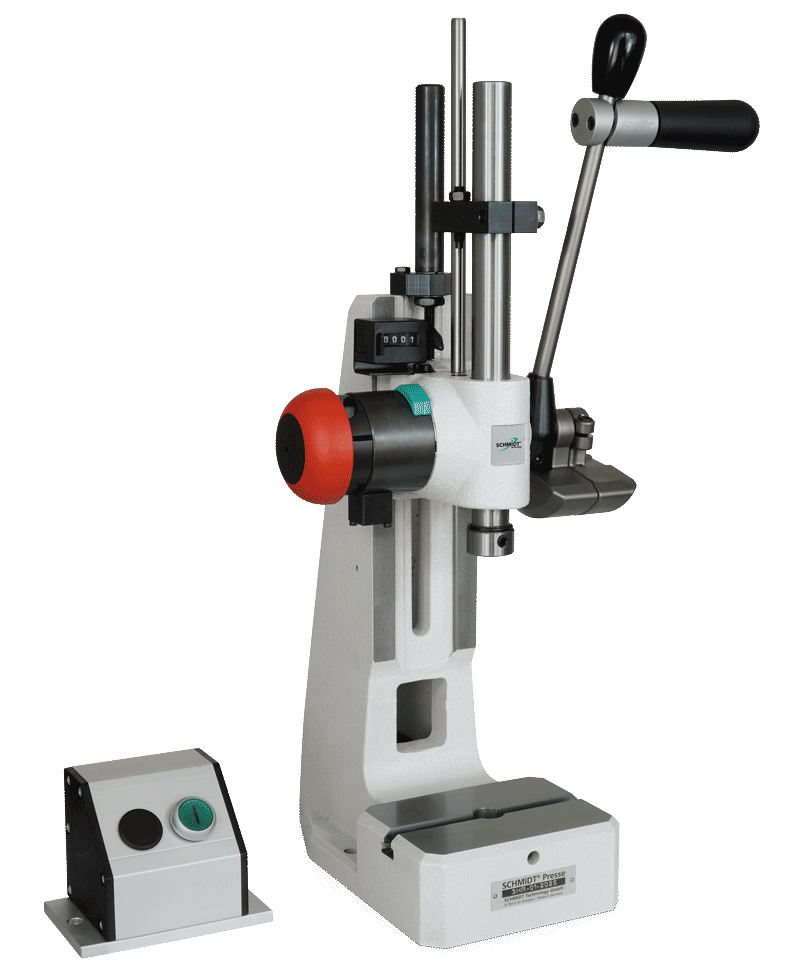 Pour y remédier, nos presses manuelles à levier sont équipées d'une mécanique astucieuse. Elles deviennent ainsi des dispositifs techniques de sécurité avec une commande à deux mains pour actionner le mouvement du coulisseau.